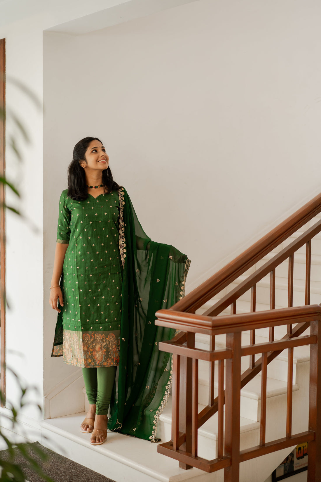 This beautiful leaf green Mangalagiri kurta set effortlessly blends tradition with a modern twist. Made...