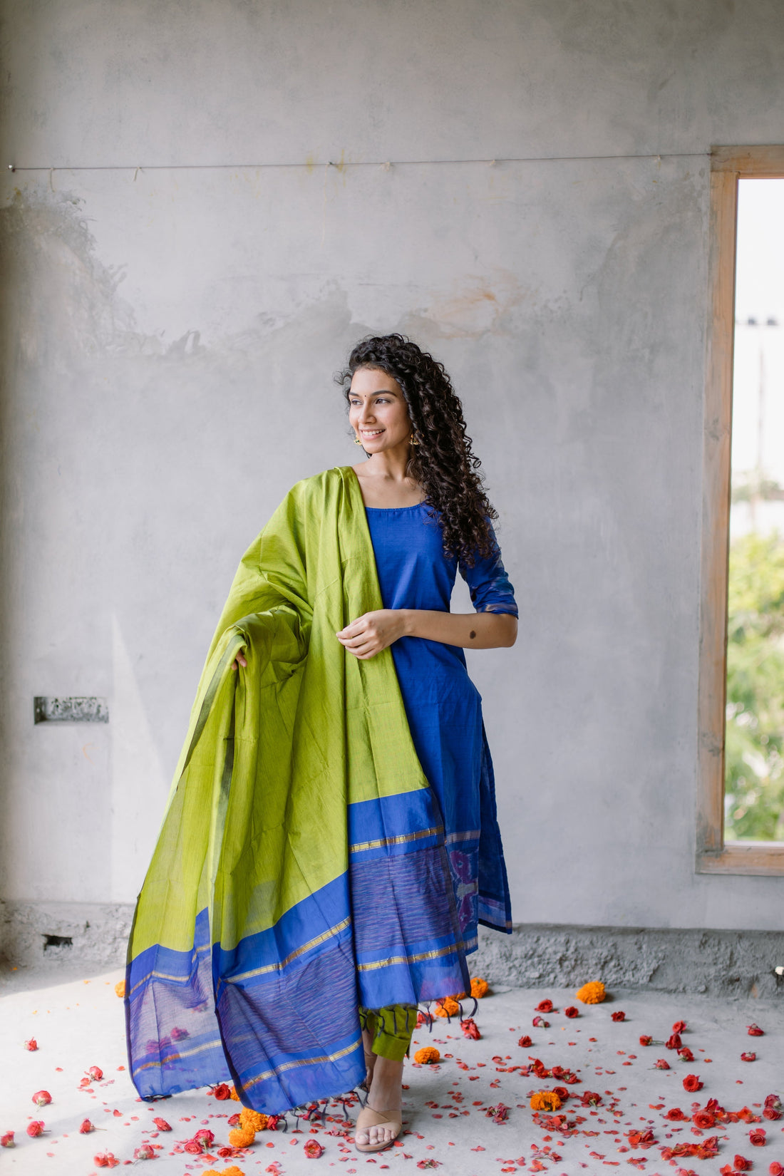 Reshma Denim Blue Handloom Kurta Set
