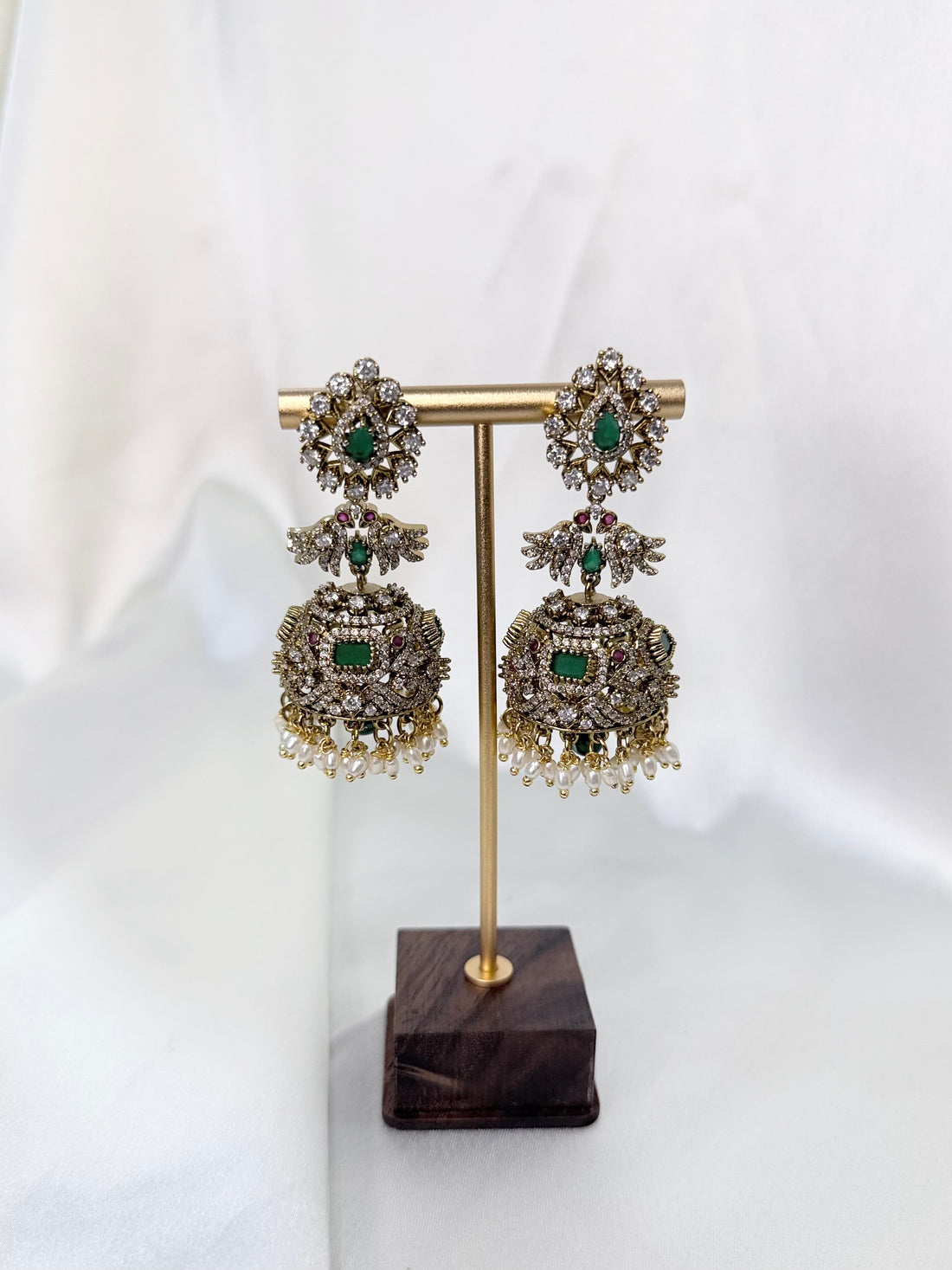 IM-CZ Emerald Stone Jhumkas