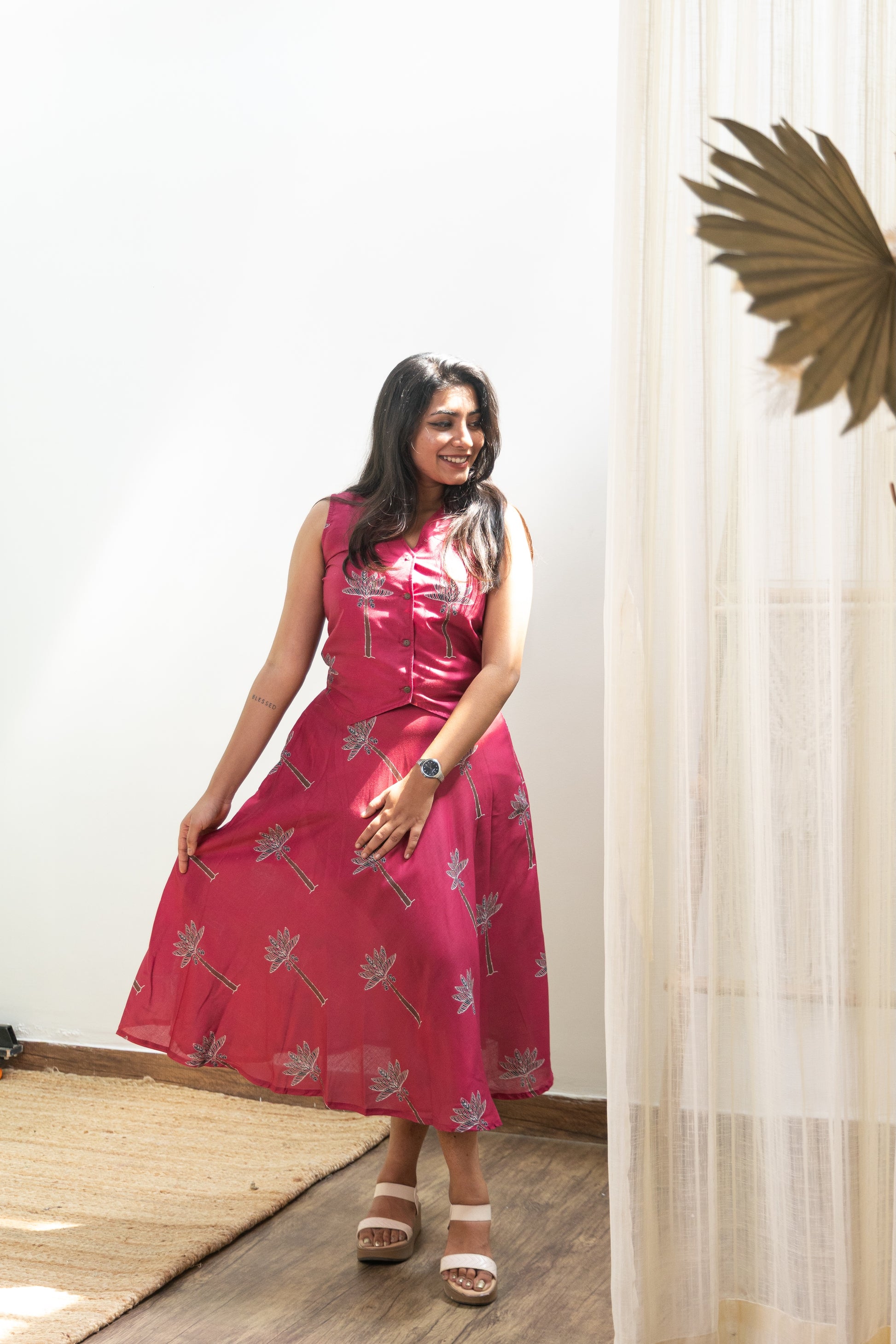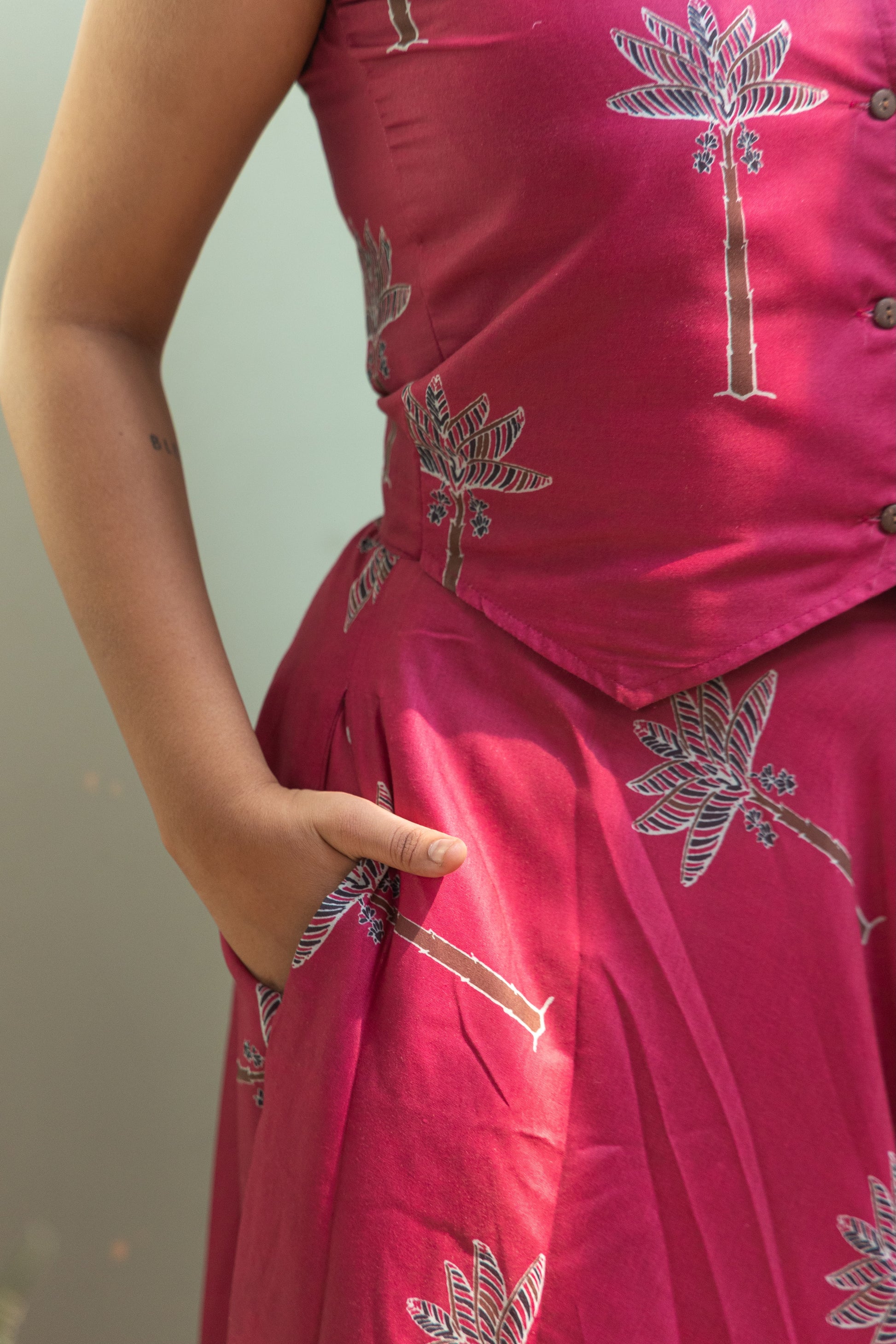 This skirt set combines style and comfort with its soft cotton material and modern button down sleeveless waistcoat-style top. Featuring tree prints, this set is perfect for adding a pop of colour to your wardrobe. Stay stylish and comfortable in this must-have outfit!